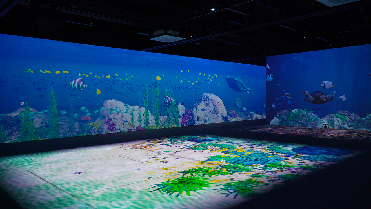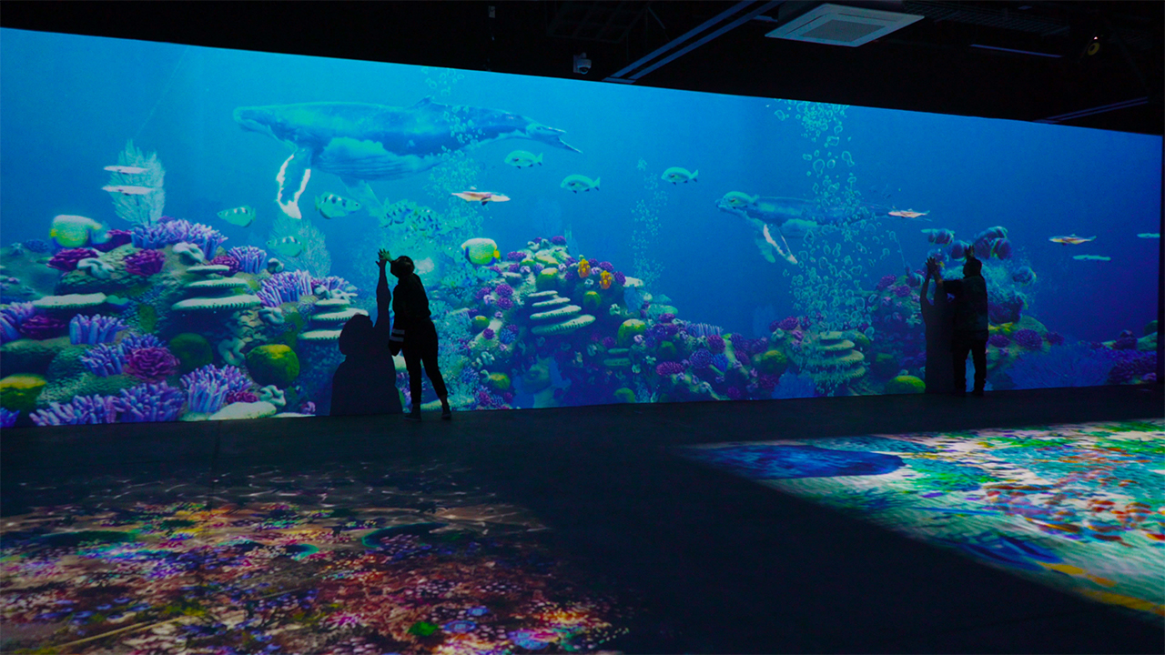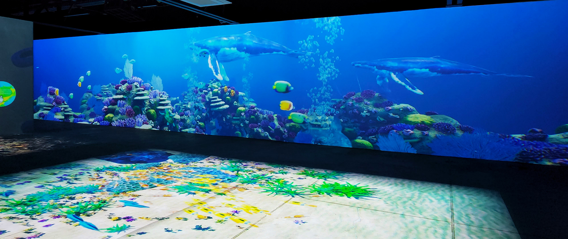 Desarrollamos el concepto, la planeación técnica, la ejecución y desarrollo de contenido del proyecto; el acuario digital interactivo más grande de Latinoamérica con un área de proyección de 900 m2 y 144,000 pixeles de resolución con todas sus paredes interactivas y se compone de de un espacio interactivo digital, un espacio de doble altura inmersivo 360 y un simulador de manejo de barco.