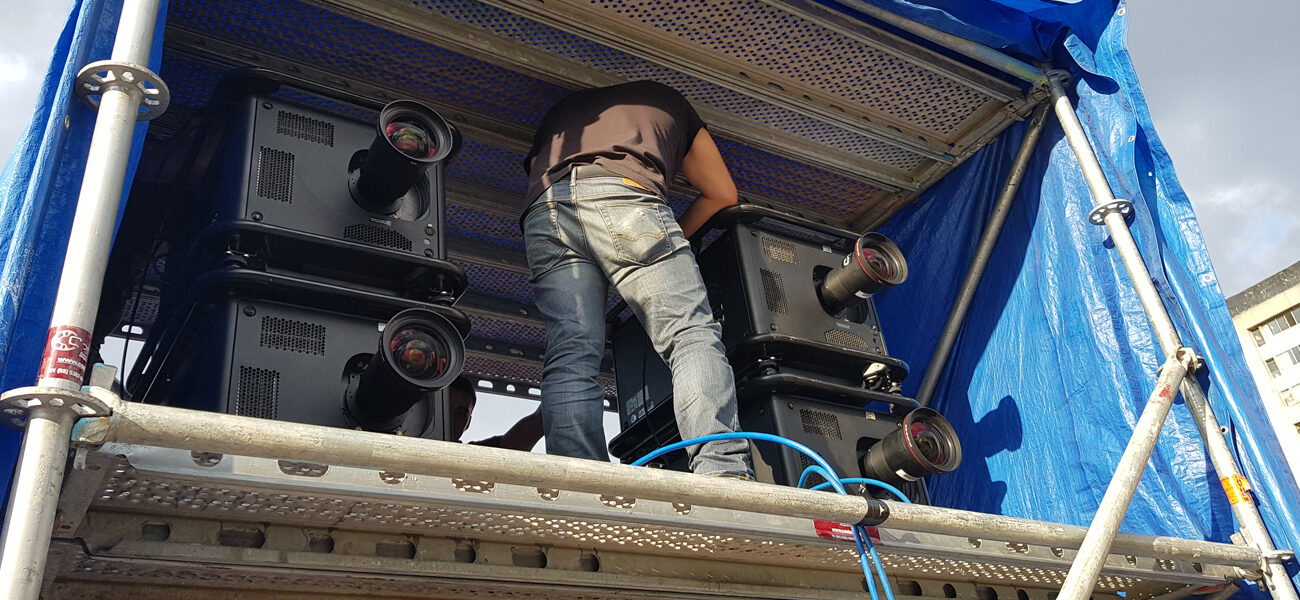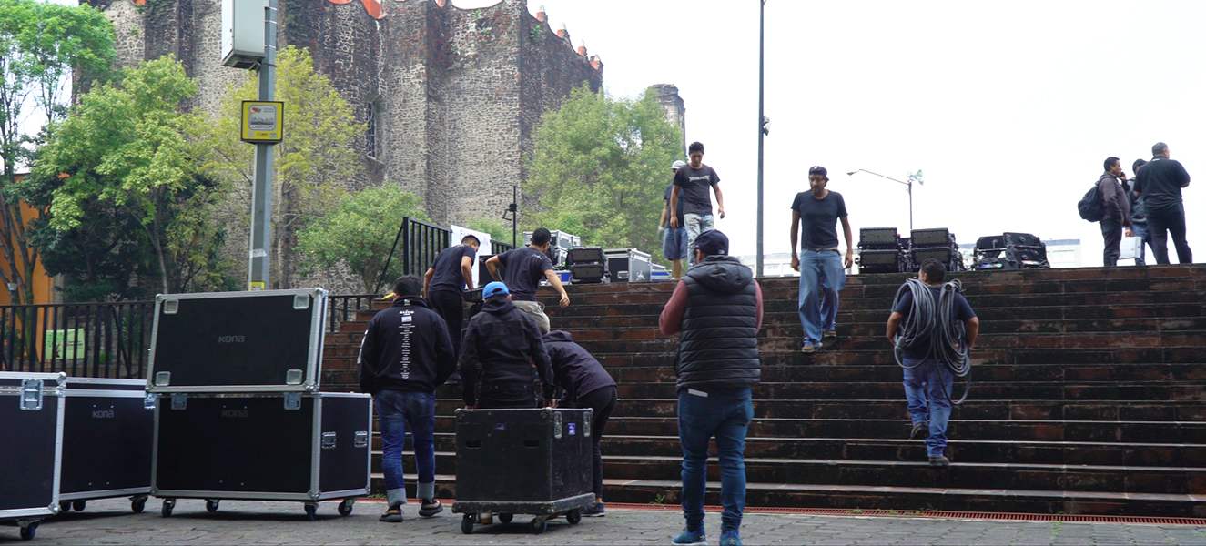 Desarrollamos un sistema de 32 canales para viajar el sonido espacialmente en la plaza de las tres culturas. Se utilizó iluminación y videomapping, creando una recreación a modo de espectáculo en sincronía.
