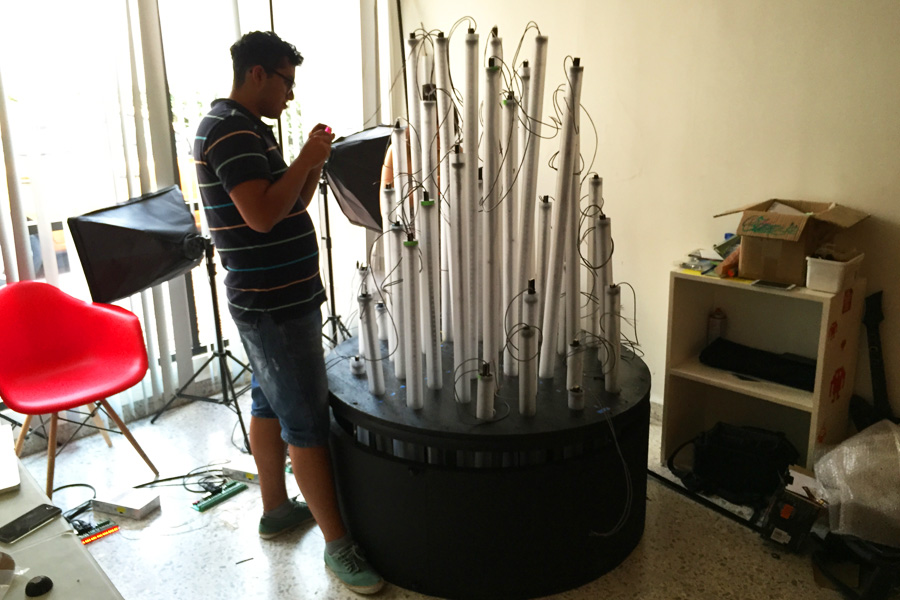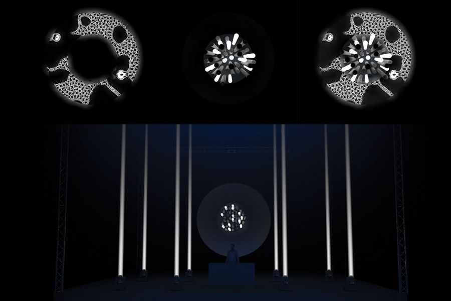 Comisionada por MUTEK MX, creamos una instalación multimedia que se coloco en el Auditorio Blackberry durante el concierto de FOUR TET y Ben UFO es una propuesta del artista Jordan Rangel, en colaboración con el colectivo COCAY; ésta hará uso de la infraestructura lumínica de Mayan Warrior, un colectivo audiovisual nacido en el festival Burning Man. La pieza hace claras referencias a la naturaleza microscópica y, con ayuda de recursos digitales, crea una atmósfera donde las bacterias crecen formando complejas estructuras: lo orgánico se vuelve luz y volumen. Este proyecto invita a descubrir la naturaleza como una fuente de recursos visuales a diferentes escalas, además de mostrar la interioridad de formas complejas como órganos, tejidos y colonias de bacterias.