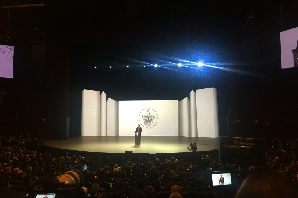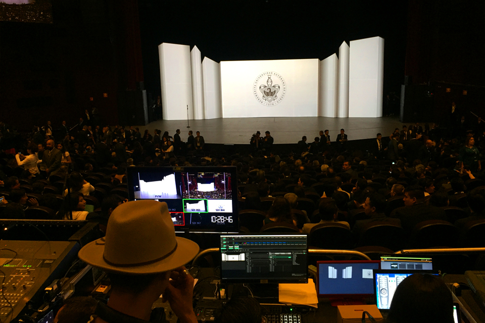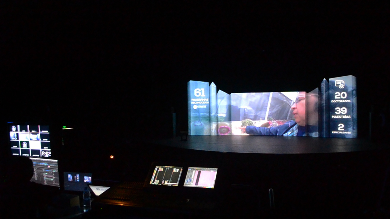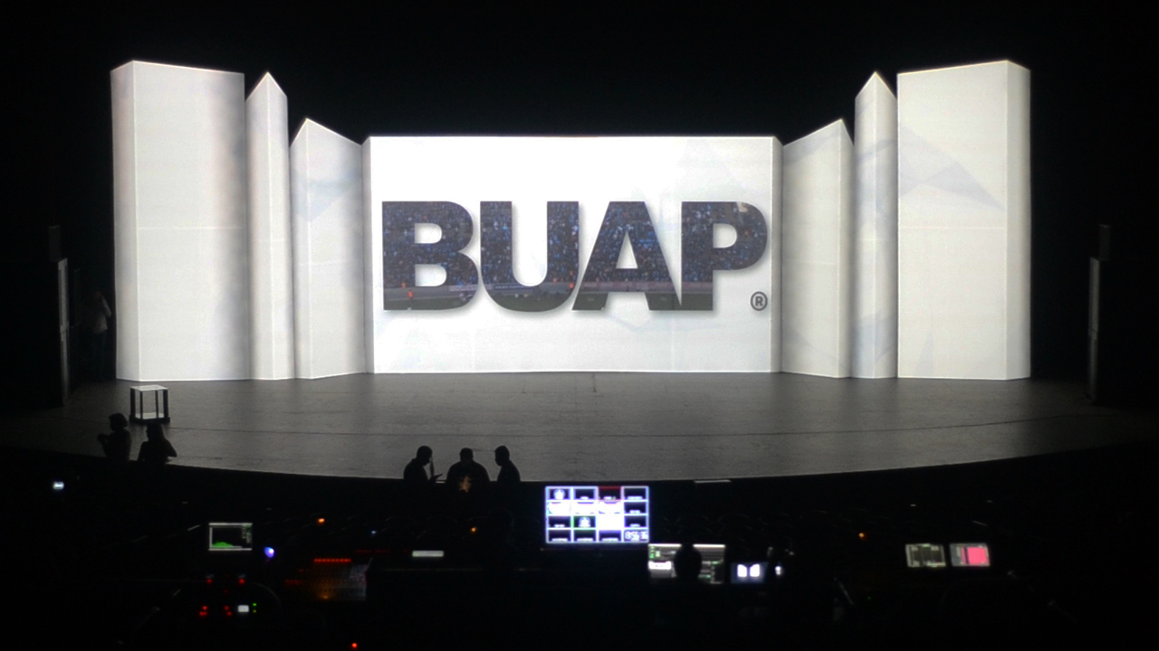 Desarrollamos la producción y el diseño de la escenografía para el tercer informe del rector Alfonso Esparza de la Universidad Benemérita de Puebla (BUAP). Implementamos un avanzado soporte multimedia que permitió la presentación de rendiciones y resultados mediante el uso de diapositivas y animaciones de videomapping. Este enfoque, basado en la tecnología e innovación, facilitó la visualización de la información en un formato amplio y atractivo.