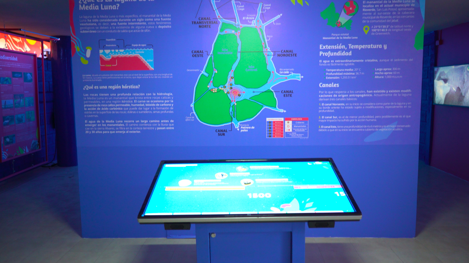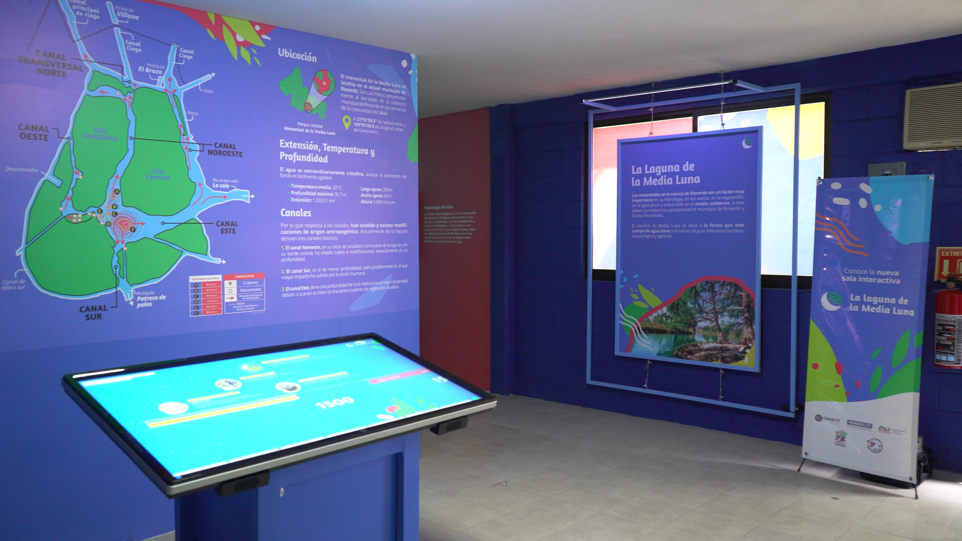 Con el objetivo de promover el cuidado y preservación del área natural protegida del Manantial de la Media Luna, dando a conocer su importancia y riqueza, sobre todo entre las nuevas generaciones se desarrollo la Sala Inmersiva Museográfica, con que se cuenta en el Museo Interactivo El Colibrí.